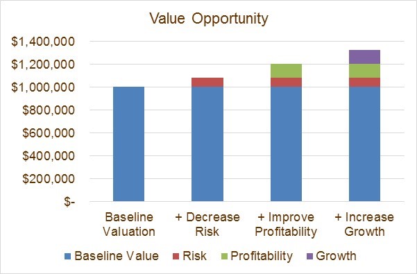In fact, there are three components which can increase – or decrease, the value of a business: risk, profitability and growth.